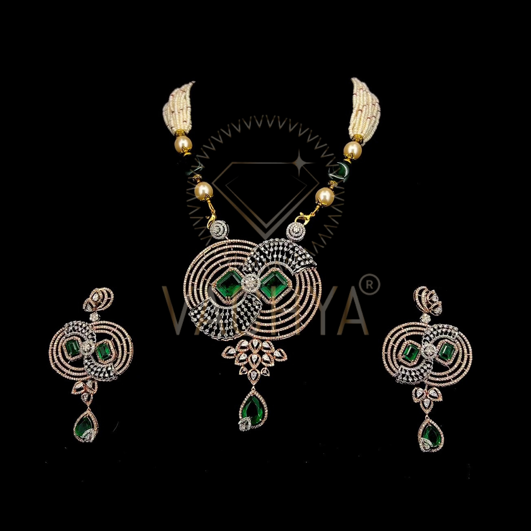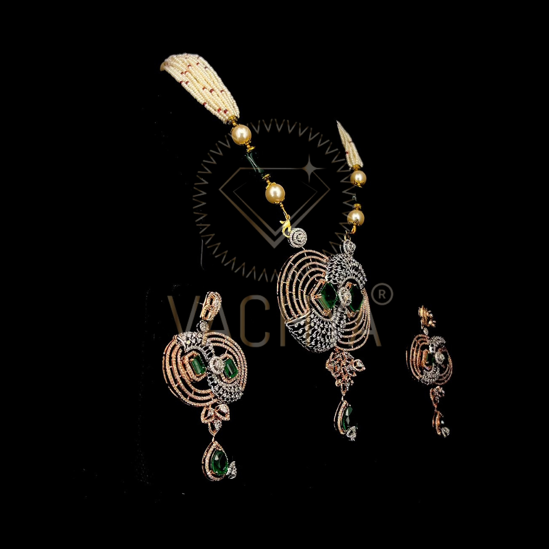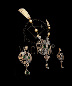 Type:- Tulasi Green Stone Diamond Pendant set.